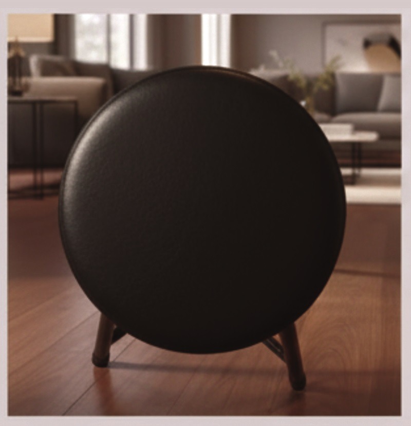 The stool features a high-quality padded seat, upholstered in smooth rexine (available in black or brown), providing a refined leather-like look that’s easy to clean and long-lasting.